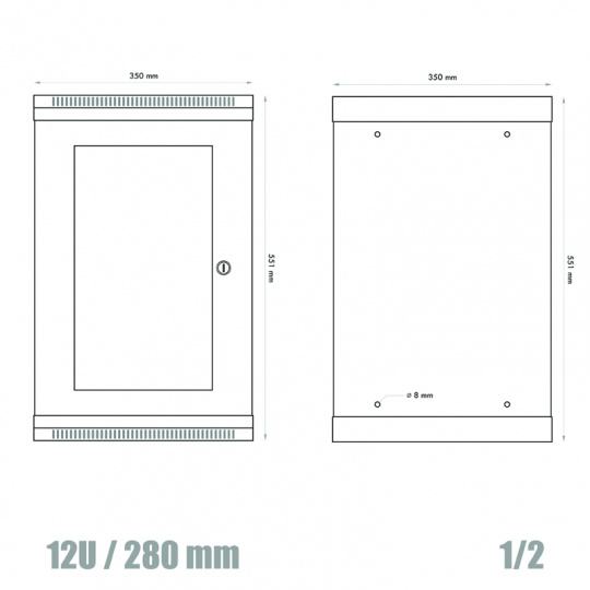 10" rack jednodílný 12U/280 DATACOM černý Skl.dv.