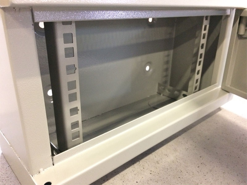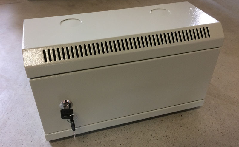 10´´ široký, 4U vysoký, 140mm hluboký, ŠEDÝ, plechové dveře