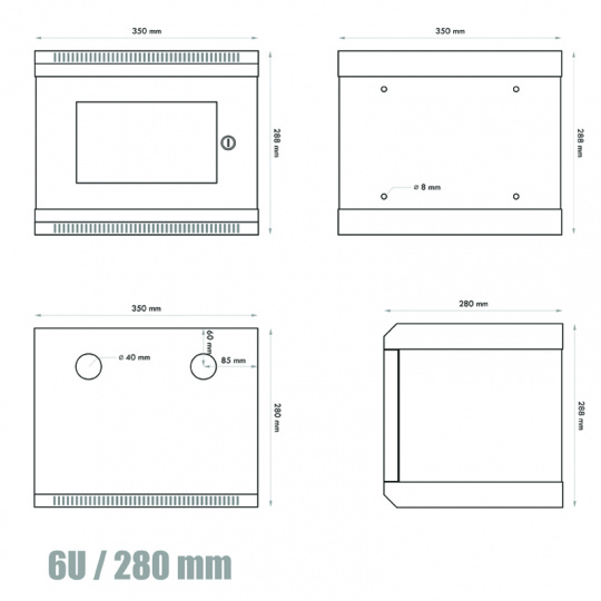 10" rack jednodílný 6U/280 DATACOM šedý Skl.dv.