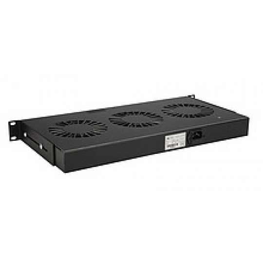 19" 1U 3 ventilátory s bimetalovým termostatem RAL černá do 19" lišt VJ19-3-T-B