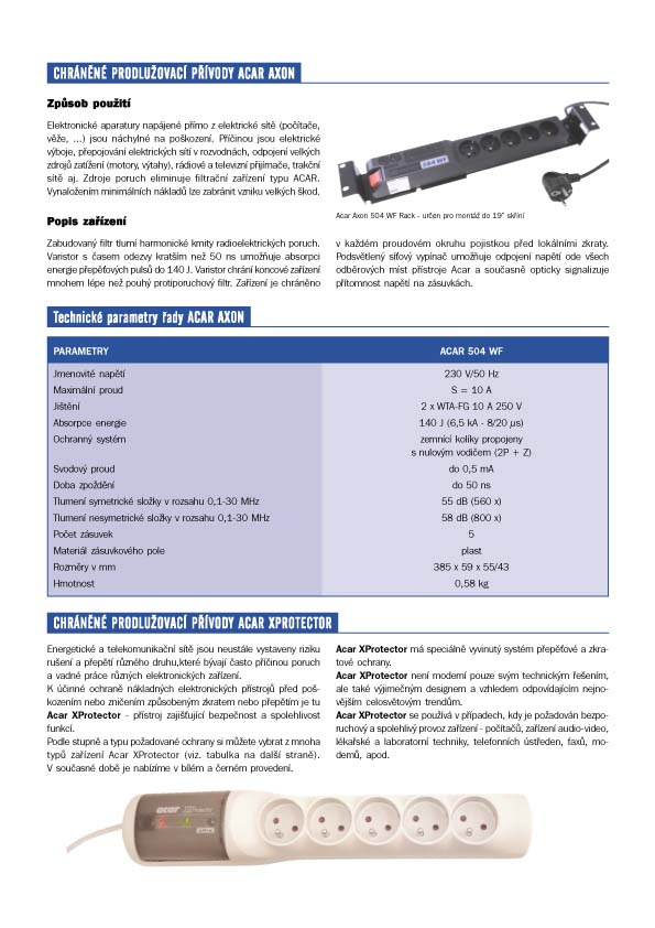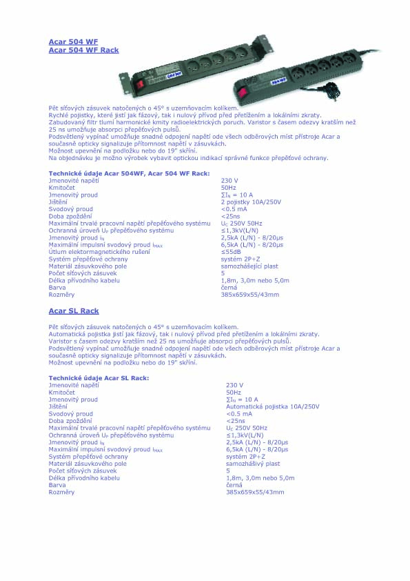 Přepěťová ochrana Acar 504 WF Rack