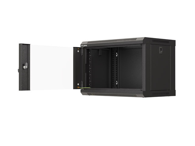 Prosklené dveře na přední straně a přístup ze stran a zadní strany skříně přes odnímatelné boční panely a odnímatelný zadní panel znamenají jak vysokou funkčnost, tak ochranu zařízení před náhodným vypnutím nebo poškozením. Kromě toho je možné skříň namontovat přímo na stěnu (skrz otvory v rámu) nebo pomocí speciální lišty, což značně usnadňuje instalaci v různých podmínkách.
