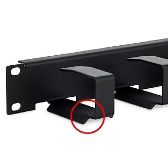 19" vyvazovací panel 1U, 6 x vyvazovací háček 70 x 27 mm s náběhem proti poškození optických vláken a kabelů