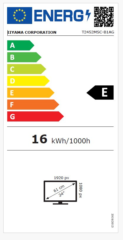 23.8” PCAP 10pt touchscreen monitor featuring IPS panel technology, Edge-to-Edge glass design and anti Anti Glare coating * IPS Technology *Touch technology - Capacitive *Anti-fingerprint coating *Scratch resistance *Speakers Typ obrazovky: IPS Podsvícení: LED Úhlopříčka [palce]: 23.8" Rozlišení: 1920 x 1080 @ 60 Hz Rozteč bodu [mm]: 0.274 mm Obnovovací frekvence [Hz]: 60 Hz Poměr stran: 16:9 Povrch displeje: Matný (bezel black, matte) Jas [cd/m2]: 344 cd/m2 with touch, 400 cd/m2 Kontrast: 1000:1 Odezva [ms]: 5 ms Počet barev: 16.7 milionu 8bit Reproduktory: 2 x 1 W Konektory: *Digital signal input: HDMI x1/ DisplayPort x1 *Audio output: Mini jack x1 *USB HUB: x2 (v.3.2 (Gen 1, 5Gbit)) Touch *Touch technologie: projective capacitive *Počet dotykových bodů: 10 *Přesnost dotyku: ± 2 mm *Způsob dotyku: stylus, prst, rukavice (latex) *Rozhraní dotyku: USB *Podporované OS: All iiyama monitors are Plug & Play and compatible with Windows and Linux. *Palm rejection: ano Napájení: interní, AC AC - AC V, 100/V, 240 Hz Spotřeba [W]: 16 W typical Stand By režim [W]: 1.5 W Třída energetické náročnosti: E Montáž na zeď: VESA 100 x 100 mm Ergonomie: Tilt angle 90° up; 5° down Barva: černá Rozměry (se stojanem, ŠxVxH mm): 567 x 385 x 253.5 mm Hmotnost [kg]: 5.6 kg Obsah balení: napájecí kabel, USB kabel, HDMI kabel, quick start guide, safety guide Záruka: 36 měs.
