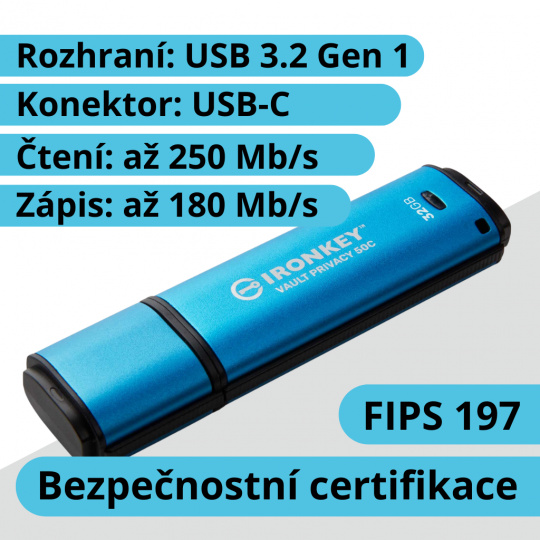 Kingston Ironkey Vault Privacy 50C/32GB/USB 3.2/USB-C/Modrá