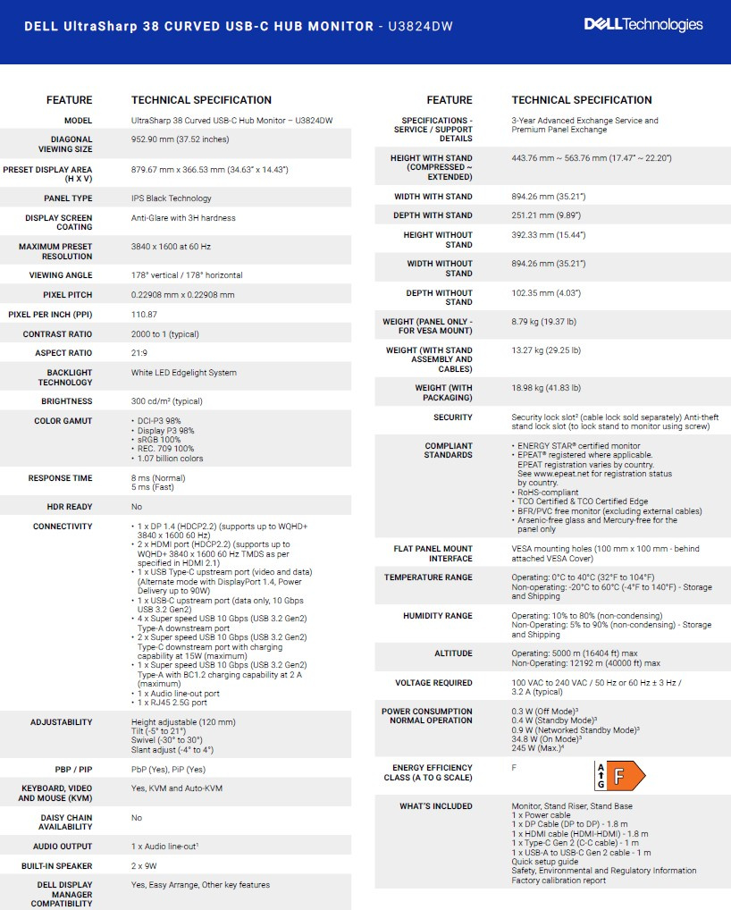UltraSharp 38 Curved USB-C Hub Monitor – U3824DW