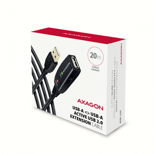 AXAGON ADR-220, USB 2.0 A-M -> A-F aktivní prodlužovací / repeater kabel, 20m