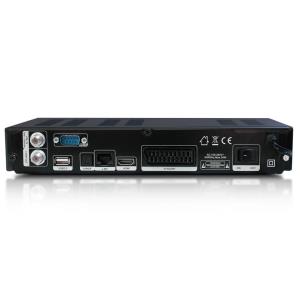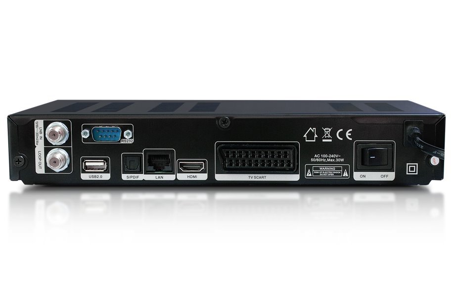 Porty: 1 x LNB vstup, 1 x LNB výstup, 1 x CI slot, 2 x USB, 1 x sériový port, 1 x optický výstup zvuku, 1 x RJ45, 1 x HDMI, 1 x SCART