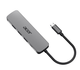 Acer 5IN1 Type- C dongle, 1x HDMI (až 3840x2160@60hz), 3x USB 3.0 5Gbps ports, 1x Type-C up to 100W PD port (host)