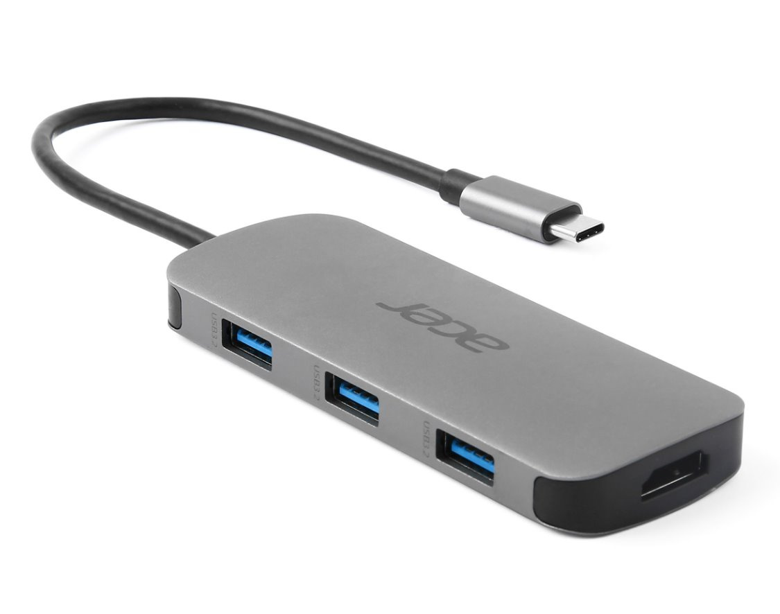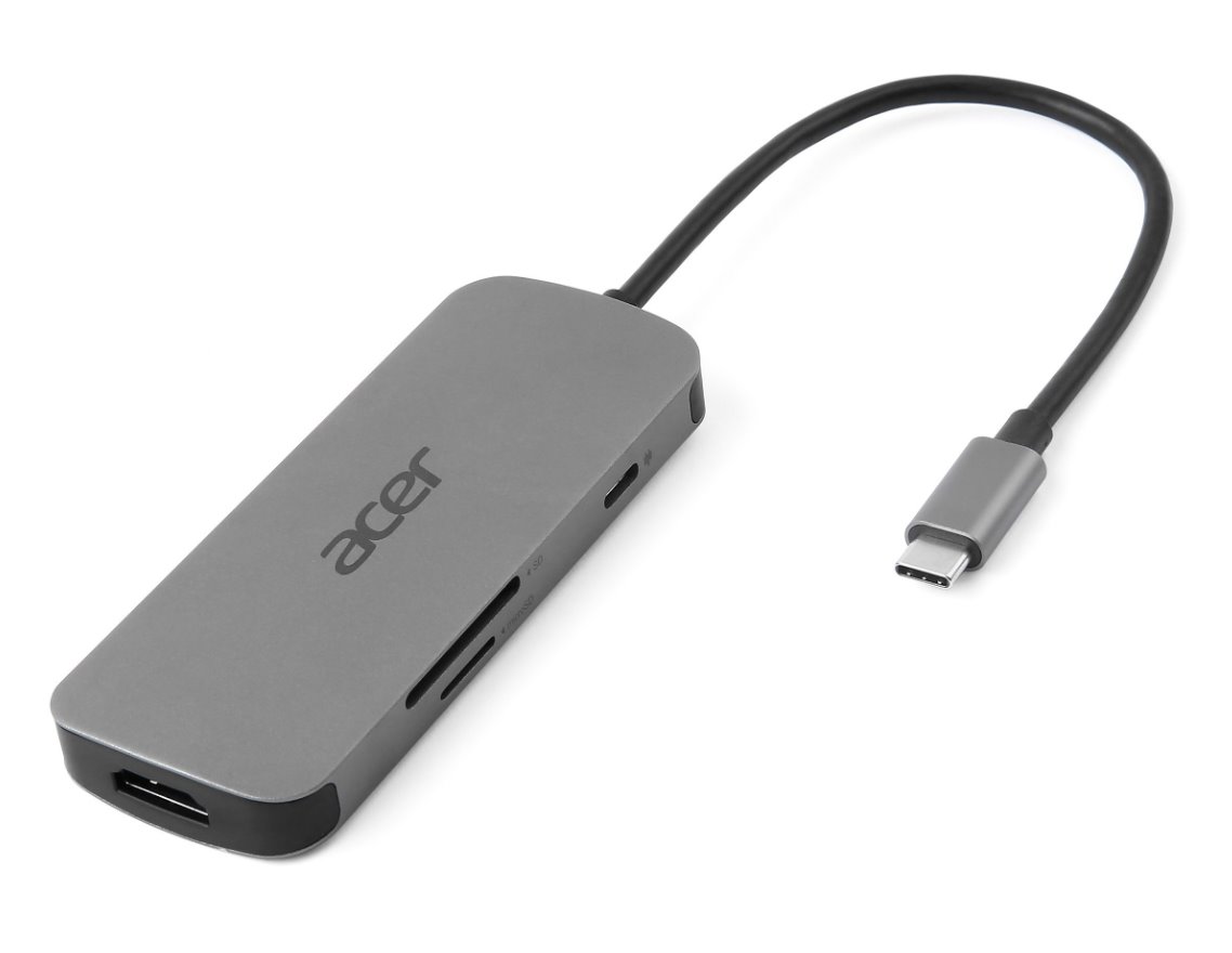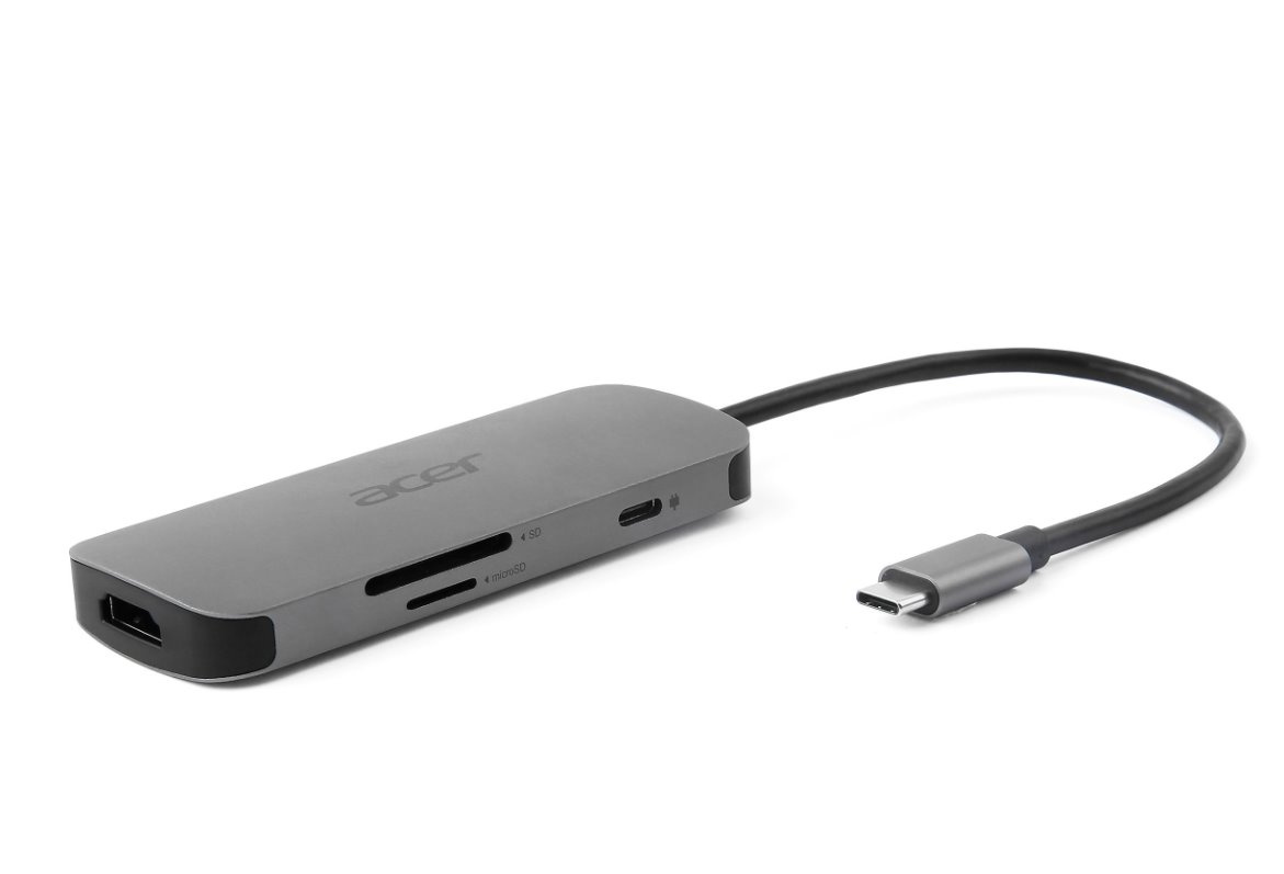 ACER 7IN1 TYPE C DONGLE: 1x HDMI,1x USB-C (Power Delivery max. 100W), 3x USB3.2, 1× SD, 1× micro SD