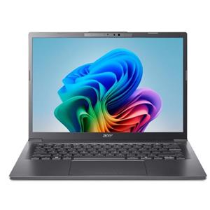 Aspire 14 AI (A14-53M-56LA) - Windows 11 Home - Intel® Core™ Ultra 5 processor 226V - NPU Intel® AI Boost up to 40 TOPS - 16 GB LPDDR5X Memory On Board + N/A - 1024GB PCIe NVMe SSD PM4 + N/A - Micro SD card reader - 14" WUXGA 1920x1200 16:10 OLED Glare DCI-P3 100%/Adobe100% 400nits Support HDR True black 500, TÜV Low blue/Eyesafe - Intel® ARC™ Graphics - Wifi 7 802.11be 2x2 MU-MIMO + BT 5.4 LE Audio - FHD IR USB TNR camera with 2Mic. with camera shutter - Backlight KB - 2x USB Type-C port supporting: USB4 ® 40Gbps / USB charging 5 V; 3 A / DC-in port 20 V; 100 W - 2x USB 3.2 Gen1 - HDMI 2.1 - Copilot Key (AI) - Acer Sense App - 65Wh Li-ion battery - 65W USB Type-C AC Adapter PCR50% TCO9.0 - Pure Silver Metal LCD + Bottom cover