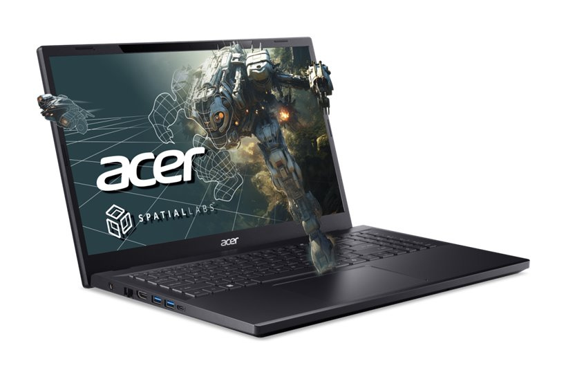 Acer Aspire 3D 15 SpatialLabs Edition (A3D15-71GM-734V) - Windows 11 Professional 64-bit - Intel® Core™ i7-13620H - 16 GB DDR5 Memory + 16 GB DDR5 Memory - 1024GB PCIe NVMe SSD PM4 + N (M.2 PCIe Gen3) - 15,6" UHD 3840x2160 (1920x2160@3D mode) IPS Glare Adobe RGB 100% 350nits with 3D SpatialLabs support - NVIDIA® GeForce RTX™ 4050 6G-GDDR6 (2C*512*16*3) 16Gbps - Wifi 6 Intel 802.11ax 2x2 CNVi + BT - HD USB TNR Camera with 2Mic. + 2x VGA SpatialLabs Eye tracking cam - USB Type-C™ port supporting: USB 3.2 Gen 2 (up to 10 Gbps) / DisplayPort over USB-C / Thunderbolt™ 4 / USB charging 5 V; 3 A / DC-in port 20 V; 65 W - 3x USB 3.2 Gen1 - HDMI 2.1 - RJ-45 - 57Wh Li-ion battery - 135W 5.5phy Slim AC Adapter - Obsidian Black + Black Aluminium LCD cover