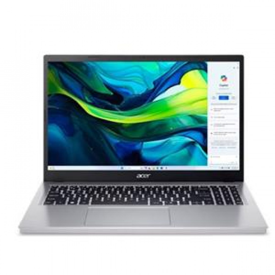 Aspire Go 15 (AG15-32P-C3L4) - Windows 11 Home - Intel® processor N150 - 16 GB DDR5 Memory + N/A - 512GB PCIe Gen3 NVMe SSD PM4 + N/A - 15,6" FHD 1920x1080 TN Anti-Glare - Intel® Graphics - Wifi 6 802.11AX + BT 5.1 - HD USB TNR Camera with 2Mic. - 2x USB Type-C™ port supporting: USB 3.2 Gen 2 (up to 10 Gbps) / DisplayPort over USB-C / USB charging 5 V; 3 A / DC-in port 19 V; 45 W - 2x USB 3.2 Gen1 - HDMI 2.1 - Acer Sense App - Copilot Key - 53Wh Li-ion battery - 65W USB Type-C AC Adapter PCR50%_TCO9.0 - Pure Silver