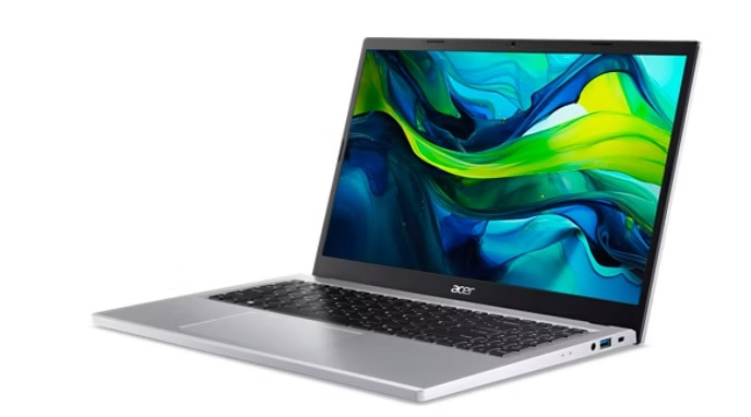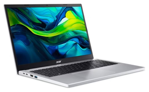 Aspire Go 15 (AG15-32P-C9RS) - Windows 11 Home - Intel® processor N150 - 8 GB DDR5 Memory + N/A - 512GB PCIe Gen3 NVMe SSD PM4 + N/A - 15,6" FHD 1920x1080 TN Anti-Glare - Intel® Graphics - Wifi 6 802.11AX + BT 5.1 - HD USB TNR Camera with 2Mic. - 2x USB Type-C™ port supporting: USB 3.2 Gen 2 (up to 10 Gbps) / DisplayPort over USB-C / USB charging 5 V; 3 A / DC-in port 19 V; 45 W - 2x USB 3.2 Gen1 - HDMI 2.1 - Acer Sense App - Copilot Key - 53Wh Li-ion battery - 65W USB Type-C AC Adapter PCR50%_TCO9.0 - Pure Silver
