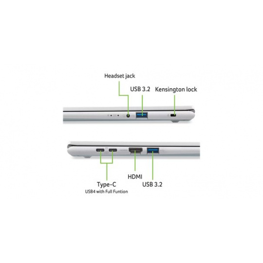Aspire Go 16 (AG16-71P-513Y) - Windows 11 Home - Intel® Core™ 5 processor 120U - 8 GB DDR5 Memory + 8 GB DDR5 Memory - 1024GB PCIe NVMe SSD PM4 + N/A - 16" WUXGA 1920x1200 16:10 IPS Anti-Glare 120Hz 300nits - Intel® Graphics - Wifi 6 802.11AX 2x2 MU-MIMO ICPS + BT 5.0 - FHD USB TNR Camera with 2Mic. with camera shutter - Backlight KB - 2x USB Type-C™ port supporting: USB 3.2 Gen 2 (up to 10 Gbps) / DisplayPort over USB-C / USB charging 5 V; 3 A / DC-in port 20 V; 65 W - 2x USB 3.2 Gen1 - HDMI 2.1 - Acer Sense App - Copilot Key - 53Wh Li-ion battery - 65W USB Type-C AC Adapter PCR50% TCO9.0 - Pure silver