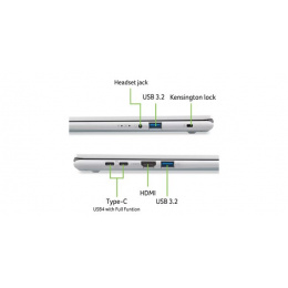 Aspire Go 16 (AG16-71P-719Y) - Windows 11 Home - Intel® Core™ 7 processor 150U - 16 GB DDR5 Memory + 16 GB DDR5 Memory - 1024GB PCIe NVMe SSD PM4 + N/A - 16" WUXGA 1920x1200 16:10 IPS Anti-Glare 120Hz 300nits - Intel® Graphics - Wifi 6 802.11AX 2x2 MU-MIMO ICPS + BT 5.0 - FHD USB TNR Camera with 2Mic. with camera shutter - Backlight KB - 2x USB Type-C™ port supporting: USB 3.2 Gen 2 (up to 10 Gbps) / DisplayPort over USB-C / USB charging 5 V; 3 A / DC-in port 20 V; 65 W - 2x USB 3.2 Gen1 - HDMI 2.1 - Acer Sense App - Copilot Key - 53Wh Li-ion battery - 65W USB Type-C AC Adapter PCR50% TCO9.0 - Pure silver