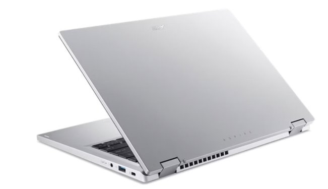 Aspire Go Spin 14 (AGSP14-31PT-33QY) - Windows 11 Home - Intel® Core™ 3 processor N355 - 16 GB LPDDR5 Memory On Board + N/A - 512GB PCIe Gen3 NVMe SSD PM4 + N/A - 14" WUXGA 1920x1200 16:10 IPS Glare Touch with Acer Active Pen (Wacom AES 2.0) support (NO pen in package) - Intel® Graphics - Wifi 6 802.11AX + BT 5.1 - HD USB TNR Camera with 2Mic. - 2x USB Type-C™ port supporting: USB 3.2 Gen 2 (up to 10 Gbps) / DisplayPort over USB-C / USB charging 5 V; 3 A / DC-in port 19 V; 45 W - 2x USB 3.2 Gen1 - HDMI 2.1 - Acer Sense App - Copilot Key - 53Wh Li-ion battery - 65W USB Type-C AC Adapter PCR50%_TCO9.0 - Pure Silver (Convertible laptop)