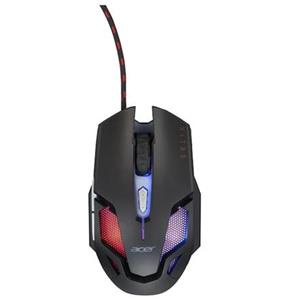 Acer NITRO GAMING MOUSE II - herní myš optická, max. 7200dpi (6 úrovní - 800-7200), 7 typů podsvícení, 6 tlačítek (2 postranní FWD, BWD), akcelerace 20G, Frame rate 7000 fps, polling rate 125MHz, životnost >3 mil. kliknutí, golden USB konektor, opletený kabel 1,8m, rozměry 128 x 73 x 50 mm, hmotnost 146g, black