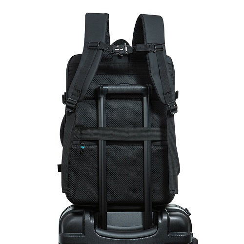 Ergonomický design s nastavitelnými popruhy a možností upevnění na kufr zaručuje pohodlí i při delších cestách.