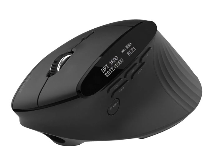 Acer Smart Fit Vertical Mouse - Black, Wireless RF 2.4GHz + BT (2x) + USB, vertikální (pro praváky), citlivost 8000 DPI