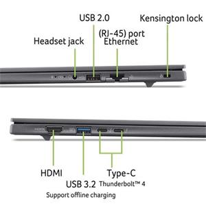 TravelMate X4 14 AI (TMX414-51-TCO-53ZR) - Copilot+ PC - Windows 11 Professional 64bit - Intel® Core™ Ultra 5 processor 226V - Intel® AI Boost up to 40 TOPS - 16 GB LPDDR5X Memory On Board + N/A - 1024GB PCIe NVMe SSD PM4 + N/A - 14" WUXGA 1920x1200 16:10 IPS Anti-Glare sRGB 100% 120Hz 300nits - Intel® Graphics - WIFI 7 Intel 802.11be 2x2 MU-MIMO + BT 5.4 LE Audio - FHD IR Camera with 3Mic. and camera shutter + Vision sensor - Backlight KB - 2x USB Type-C port supporting: USB4® 40Gbps / Display port over USB-C / Thunderbolt™ 4 / USB charging 5 V; 3 A / DC-in port 15 or 20 V; 100 W - 1x USB-A 3.2 Gen1 - 1x USB-A 2.0 - HDMI 2.1 - TPM chip 2.0 - 65Wh Li-ion battery - 100W USB Type-C AC Adapter PCR50% TCO10.0 - MIL-STD 810H certification - TCO certified - Steel Gray + Steel Gray Aluminium LCD + bottom cover (laptop)