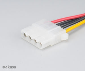Přídavný konektor pro 4pin periferie, převádí 15pin SATA PSU napájení na 4pin PSU Molex konektor, určený pro ITX a ATX zdroje bez dostatečného počtu 4pin Molex napájecích konektorů, délka: 15cm.