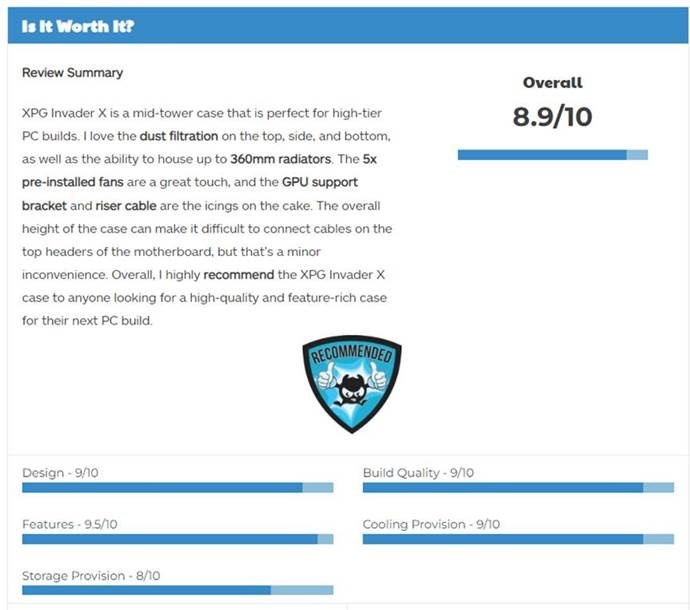 Recenze: https://tech4gamers.com/xpg-invader-x-pc-case-review/