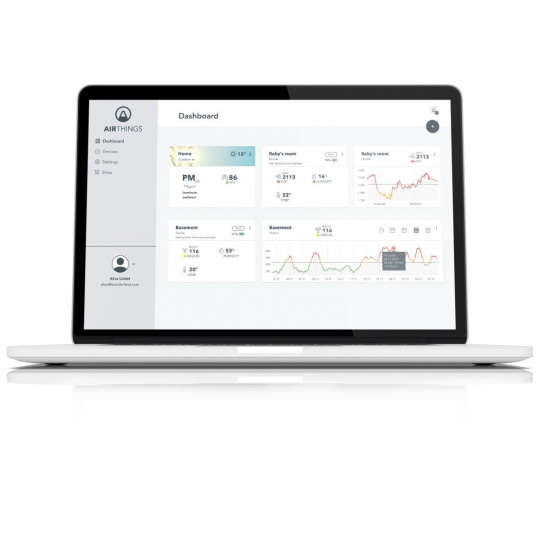 Data jsou dostupná prostřednictvím bezplatné aplikace Airthings Wave (iOS / Android) a také online pomocí Airthings Dashboard s pokročilejšími analytickými možnostmi.