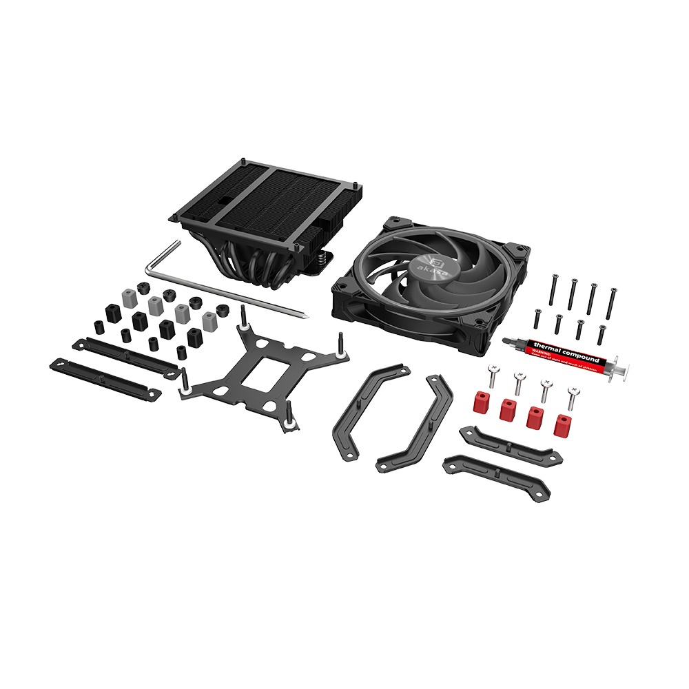 Akasa SOHO H6L M2 černý nízkoprofilový chladič CPU s aRGB podsvícením * 120mm aRGB ventilátor s pokročilým srpkovitým designem lopatek * výška 77,6 mm * optimalizovaný pro počítače SFF TDP: 160W Počet ventilátorů: 1 (120x120x26,5mm) Rychlost ventilátoru: 500-2000 ot./min Maximální průtok vzduchu: 52,91CFM Maximální tlak vzduchu: 1,75mm-H20 Hlučnost: 14,2–31,8dB(A) Jmenovité napětí ventilátoru: DC 12V Jmenovité napětí LED: DC 5V Konektor ventilátoru: 4pinový PWM Konektor LED: 3pinový adresovatelný RGB Materiál: černá hliníková žebra s měděnými trubicemi Rozměry chladiče: 120×120×77,6mm Hmotnost: 565g Kompatibilní RGB software: ASUS®, ASRock®, GIGABYTE™ RGB Fusion, MSI® a Razer Chroma™ Kompatibilita: * Intel: LGA115x, LGA1200, LGA1700, LGA1851 * AMD: AM5, AM4 Záruka: 2 roky Odkaz na stránky výrobce: https://akasa.co.uk/products/AK-CC4035HP01