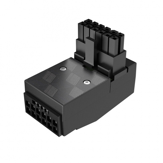 Inovativní konektor 12VHPWR, který umožňuje snadno vylepšit estetický vzhled a správu kabelů pomocí 90stupňového adaptéru 12+4-pin. Podporuje až 600 W výkonu.