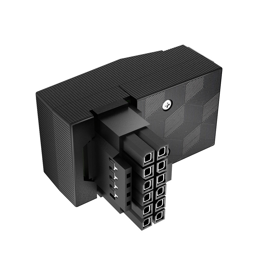 Inovativní konektor 12VHPWR, který umožňuje snadno vylepšit estetický vzhled a správu kabelů pomocí 90stupňového adaptéru 12+4-pin. Podporuje až 600 W výkonu.