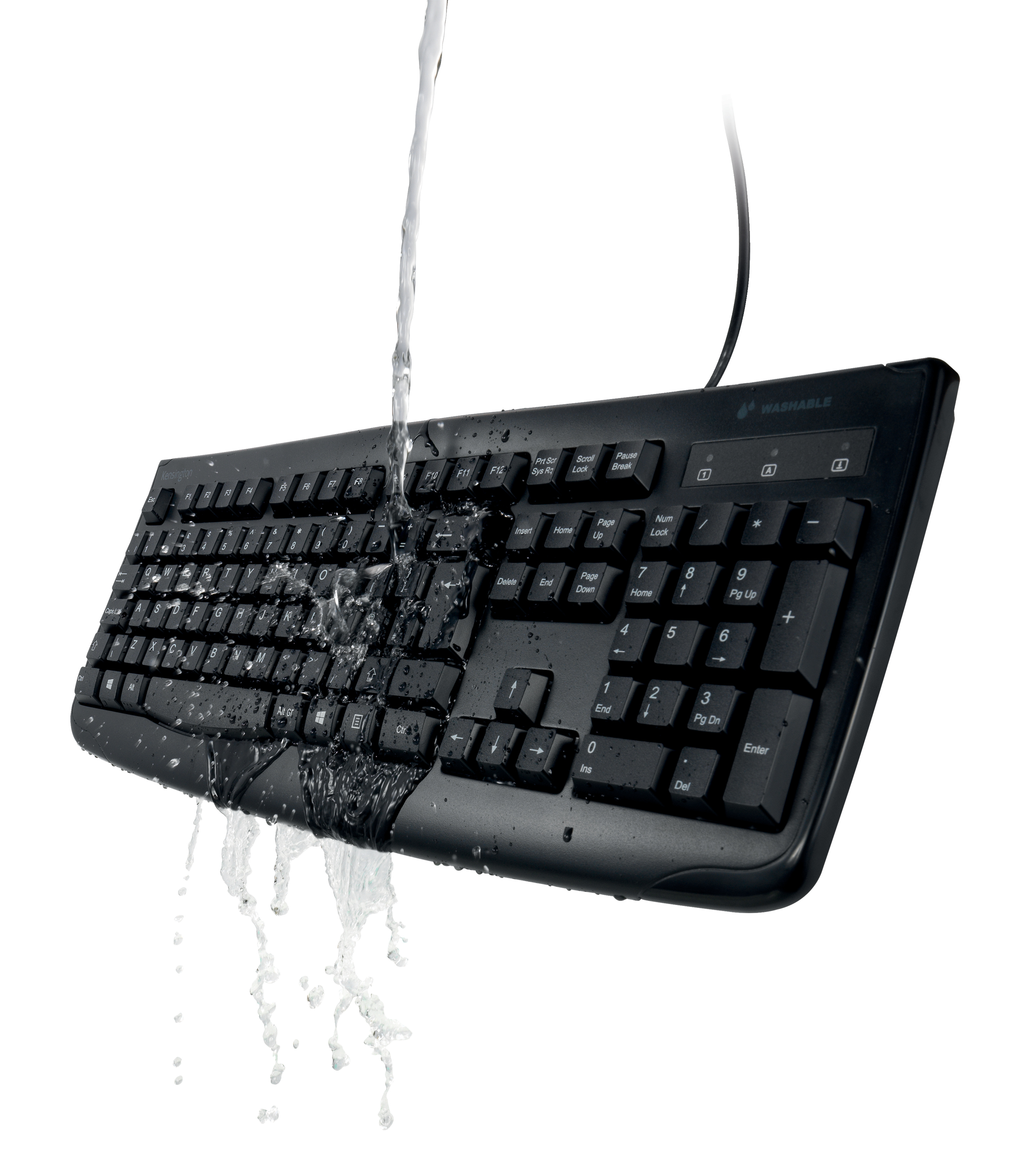 USB klávesnici Kensington v plné velikosti lze čistit pod tekoucí vodou a dezinfikovat (USB konektor nesmí být ponořen)