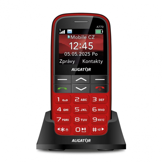 Aligator A770 Senior vyniká atraktivním vzhledem a příjemnými oblými tvary, které výborně padnou do ruky. Dobrou čitelnost za všech světelných podmínek zajišťuje vynikající 2.2" displej s vysokým kontrastem. Brýle potřebovat nebudete. *Snadné a pohodlné ovládání *Skvěle čitelný displej 2,2" orientovaný na šířku *SOS tlačítko s funkcí SOS Locator *Dálkové ovládání pomocí SMS *Vysoká hlasitost sluchátka a reproduktoru *Nabíjecí stojánek v balení *Až dva týdny na jedno nabití díky velké baterii *Nabíječka není součástí balení Paměť: *Paměť kontaktů v telefonu: 400 *Paměť na SMS: 50 *Paměť na odeslané SMS: Ano *Možnost odeslání SMS více adresátům najednou: Ano Paměťové karty: micro SD/XC, až 256 GB Displej - úhlopříčka [palce]: Barevný TFT - 2.2 Displej - rozlišení [pix]: 220 x 176 Dotykový displej: Ne Klávesnice: Ano Podporované sítě: * 2x Nano SIM *GSM: 850/900/1800/1900 GPS: SOS locator, vzdálené vyžádání polohy Konektivita: USB-C, Bluetooth, Jack 3,5 Funkce: *SOS tlačítko: Ano *SOS locator: Ano *Vzdálené vyžádání polohy: Ano *Vzdálené přidání kontaktu pomocí SMS: Ano *Vzdálené přidání připomínky do kalendáře pomocí SMS: Ano *Budík: Ano *Kalkulačka: Ano *FM rádio: Ano *Svítilna: Ano *Přehrávač hudby, videa, záznamník a další *Automatické nastavení přesného času: Ano Fotoaparát: Ano Baterie: *Kapacita [mAh]: 1700 *Li-Ion *Výdrž v pohotovostním režimu: až 14 dnů Rozměry [mm]: 128 x 61 x 14 Hmotnost [g]: 106 Obsah balení: Telefon Aligator A770, nabíjecí stojánek, návod k použití (bez nabíječky) Záruka: 24 měs.