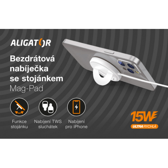 Bezdrátová nabíječka se stojánkem Aligator Mag-Pad 15W s podporou moderní technologie MagSafe