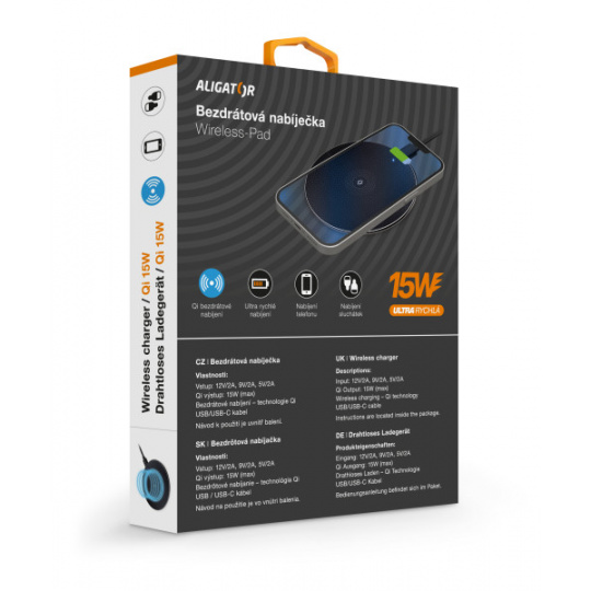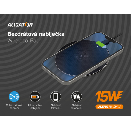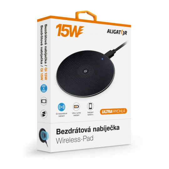 Technologie Qi používá k přenosu elektrické energie elektromagnetické pole s adaptivním řízením výkonu. Díky tomu je možné bezpečně a snadno nabíjet telefon nebo sluchátka. Aligator Wireless-Pad umožňuje bezdrátově nabíjet moderní telefony výkonem až 15W, což je 6x více než u základní USB nabíječky!