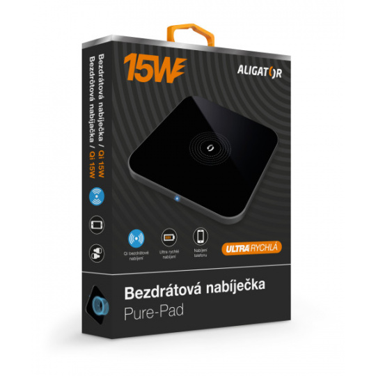 Technologie Qi používá k přenosu elektrické energie elektromagnetické pole s adaptivním řízením výkonu. Díky tomu je možné bezpečně a snadno nabíjet telefon nebo sluchátka. Aligator Pure-Pad umožňuje bezdrátově nabíjet moderní telefony výkonem až 15W, což je 6x více než u základní USB nabíječky!