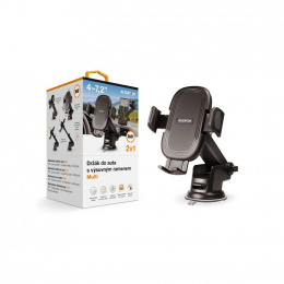 Univerzální držák pro mobilní telefony do auta s možností nastavení fixace. Pomocí vestavěné nano-podložky lze držák umístit na palubní desku i na čelní sklo. Díky speciálnímu mechanismu se přítlačné čelisti držáku roztahují pomocí tlačítka umístěného na zadní straně držáku. Naopak upevnění mobilního telefonu v držáku si manuálně uživatel nastaví přítiskem čelistí směrem k sobě, tak aby byl mobilní telefon pevně zafixován. Vycentrování mobilního telefonu v držáku zajistí manuálně výsuvná spodní čelist. Součástí spodní čelisti je průchodka pro možnost připojení nabíjecího kabelu. Praktické teleskopicky výsuvné rameno zajistí pohodlné nastavení vzdálenosti držáku od řidiče, navíc držák disponuje možností natočení mobilního telefonu v plném rozsahu 360°.