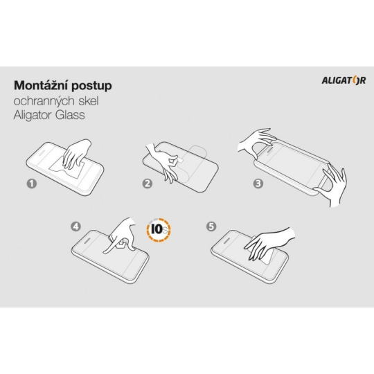 Ochranná skla Aligator Glass se díky své konstrukci, kvalitním lepidlům a unikátní technologii dobře lepí, nezanechávají bublinky a lze je opětovně sejmout a znovu použít. Pro pohodlnou montáž je balení doplněno čistící a leštící utěrkou a jednoduchým návodem, podle kterého zvládne montáž skla každý.