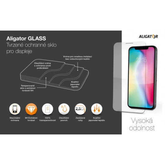 Ochranná skla Aligator Glass tlumí nárazy na displej a tím ho chrání, při nárazu se neroztříští, ale vytvoří pavučinu jako automobilová skla a rozprostře energii nárazu.