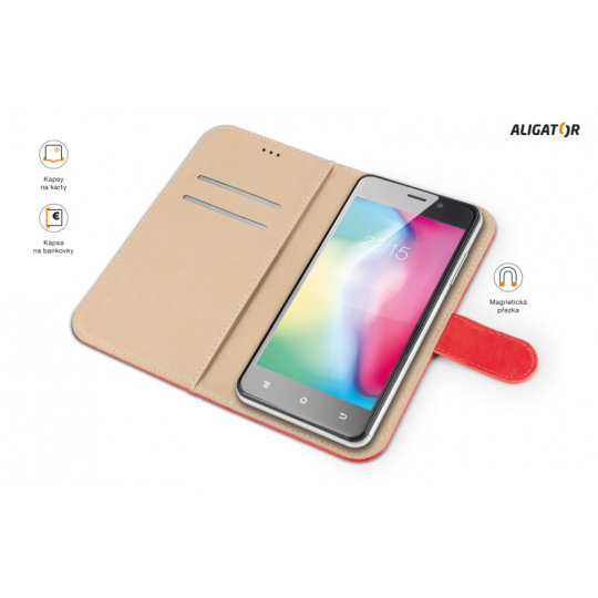 Nová řada univerzálních pouzder značky ALIGATOR. Dokonale propracovaný design, tenké provedení, přihrádka na kartu nebo vizitky, podélná kapsa na bankovky, zavírání pomocí magnetické přezky, snadné uchycení mobilního telefonu pomocí prémiové lepicí nano podložky, která je určena pro opakované umístění telefonu. Zadní výřez pro fotoaparát a čtečku otisku prstu je navržen tak, aby byl kompatibilní s většinou mobilních telefonů. Jednou z klíčových vlastností pouzdra je optimálně široký (hluboký) hřbet pouzdra, který je zároveň velmi tenký a jemně zpracovaný pro pohodlí při manipulaci. Rozměry samotného pouzdra jsou přizpůsobeny telefonům s novým poměrem stran displeje 18:9, ale zároveň jsou stále kompatibilní i s klasickými mobilními telefony. Přední odklápěcí strana je vybavena přezkou se skrytým magnetickým zavíráním. Tato přezka je navržena pro maximální ochranu Vašeho mobilního telefonu. Polstrovaná podšívka, příjemná na omak, přispívá k ochraně displeje Vašeho mobilního telefonu, stejně jako prémiová nano podložka, která zároveň skvěle fixuje mobilní telefon a slouží k opakovanému použití. Na vnitřní levé straně pouzdra najdete důmyslně skryté dvě přihrádky na kreditní kartu, nebo vizitky a jednu podélnou kapsu pro bankovky. Pouzdro UNIVERSE 20 je vyrobené z velmi kvalitní a odolné PU kůže, dostupné v 5 barvách a 3 velikostech. Je pohodlným a reprezentativním doplňkem do kapsy i do kabelky. Pro maximální ochranu Vašeho mobilního telefonu doporučujeme používat toto pouzdro v kombinaci s řadou kvalitních univerzálních tvrzených skel ALIGATOR GLASS. *Univerzální pouzdro *Zavírání pomocí magnetické přezky *Přihrádka na kartu nebo vizitky *Kapsa na bankovky *Tenké provedení *Kvalitní zpracování *Elegantní design *Snadné uchycení mobilního telefonu pomocí prémiové nano podložky *Nano podložka slouží k opakovanému umístění mobilního telefonu