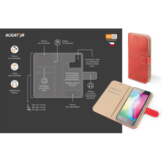 Pro maximální ochranu Vašeho mobilního telefonu doporučujeme používat toto pouzdro v kombinaci s řadou kvalitních univerzálních tvrzených skel ALIGATOR GLASS.