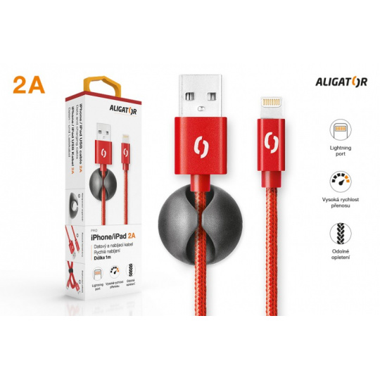 ALIGATOR PREMIUM Datový kabel 2A, Lightning červený