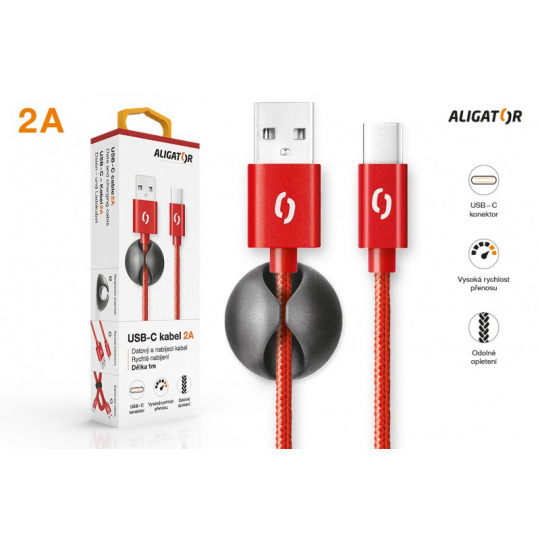 ALIGATOR PREMIUM Datový kabel 2A, USB-C červená