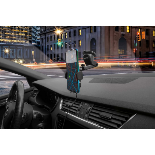 Samozavírací držák do auta s bezdrátovým nabíjením Aligator 3v1. Rychlé bezdrátové nabíjení chytrého telefonu o výkonu 15W a samozavírací ramena, která pomocí snímače automaticky sevřou mobilní telefon a zajistí ho v nejlepší možné poloze pro nabíjení.