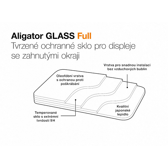 Oproti jiným běžným sklům na trhu jsou ochranná skla Aligator Glass vyráběna speciální technologií, která umožňuje zmenšit tloušťku skla až na 0,25 mm při stejných nebo dokonce ještě lepších ochranných vlastnostech skla. Díky tomu jsou skla lehčí, odolnější, displej je čitelnější a ochranná pouzdra na telefony tak lépe pasují.