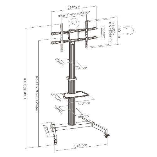 ALU pojízdný stojan Brateck FS44-46TW pro TV 37"-86" 50kg police