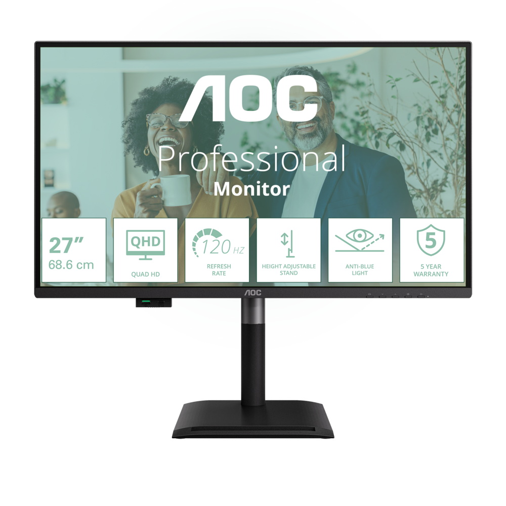 AOC LCD Q27P4CV 27" IPS/2560x1440@120Hz/4ms/350cd/HDMI/DP/4xUSB/USB-C dock/RJ45/Repro/Pivot/HAS/5 let