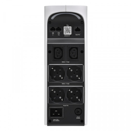 Výstupní přípojky: 4 × Schuko (s ochranou proti přepětí), 2 × IEC 60320 C13
