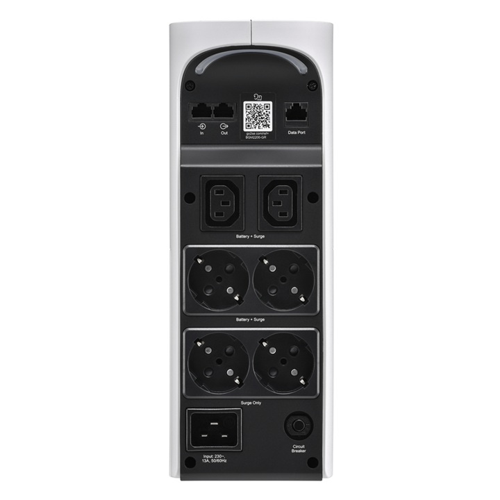 Záložní zdroj APC Back-UPS Pro poskytuje spolehlivou ochranu napájení pro domácí kanceláře a herní sestavy. Nabízí kapacitu 2200 VA / 1320 W, sinusový výstup, čtyři chráněné zásuvky Schuko a dvě zásuvky C13. Vhodný pro ochranu stolních počítačů, síťových zařízení a multimediálních systémů.