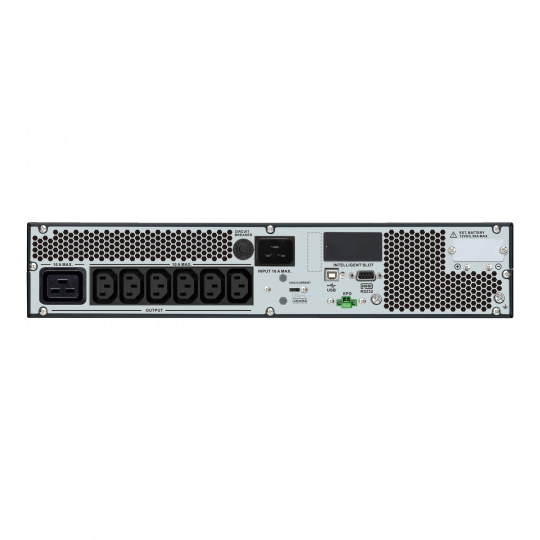 Zahrnuje: Napájecí kabely (C19, C14), USB kabel, RS-232 kabel, instalační konzole, podpěrné lišty, externí bateriový modul, bateriový kabel, uživatelská příručka